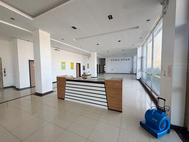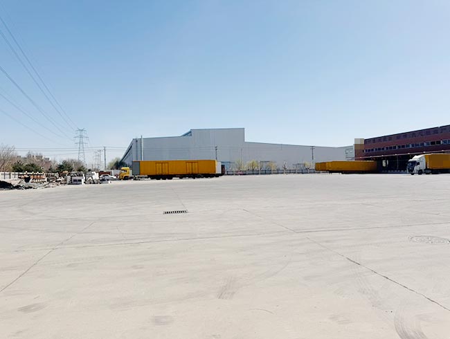 园区总占地100亩,办公住宿3854.68平米,一号库库房13113.8平米,二号库房13890.69平米。